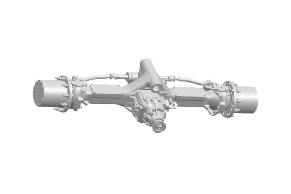 該橋設(shè)計濕式制動和輪邊減速,封閉式濕式制動系統(tǒng)做到了防火防爆,可滿足封閉空間和井下施工。輪邊減速設(shè)計要求力矩均衡,從而增強了每一個部件承載能力,大大提高整體使用壽命。